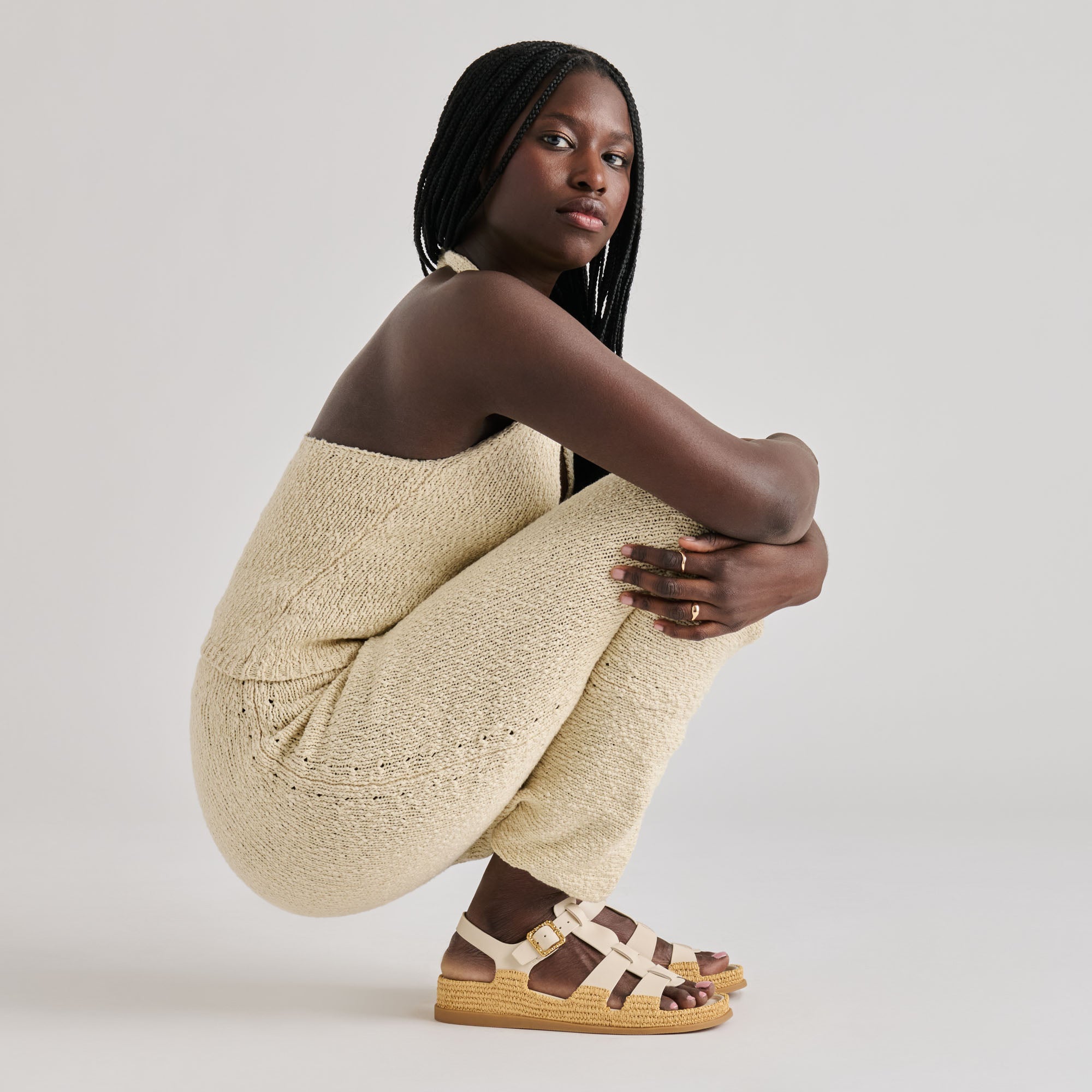 A warm weather favorite-to-be. SHENNA’s fisherman sandal design is taken to an extra beachy level with a textured raffia sole that climbs up the base of her wide leather straps. With a comfy contoured footbed and adjustable buckled strap, she’s an easy choice for everyday wear. Choose from creamy bone, timeless saddle, or shining gold leather colorways to wear with casual weekend outfits like flowy dresses and pull-on shorts. Feel good wearing this sustainably designed sandal all spring and summer long.